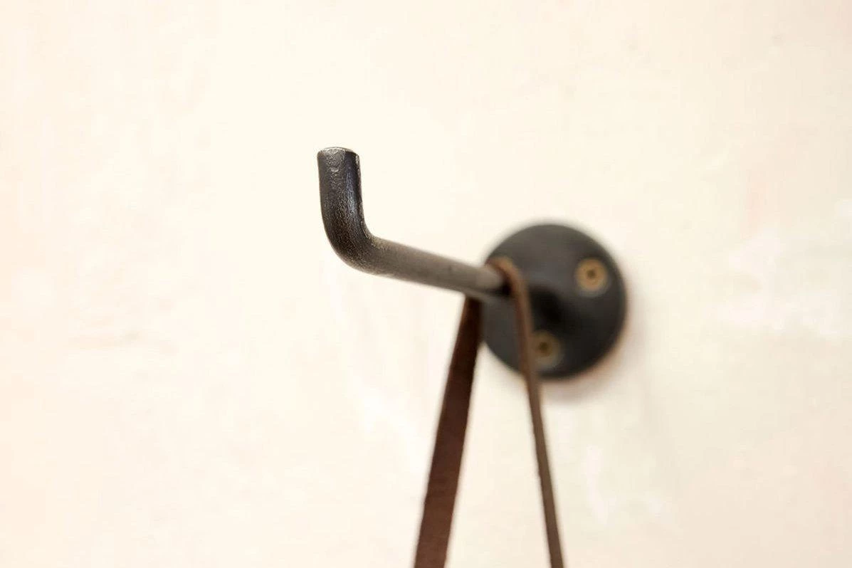 This iron hook has been hand-cast using age-old techniques. The base has holes for three screws.