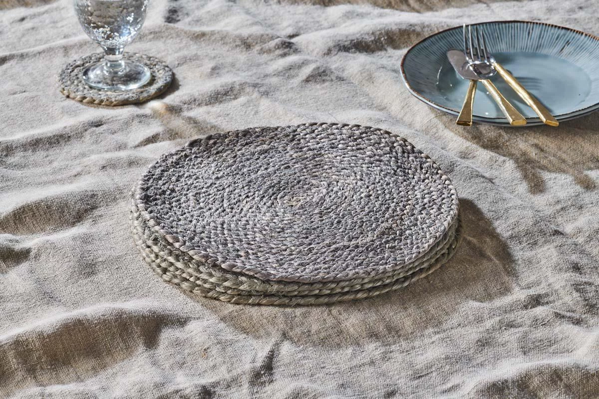 Beautifully hand braided from eco friendly hemp, our soft grey circular table mats and coasters are perfect for adding texture to a dining table. Simply add one of our stylish artisan ceramics to complete the look.