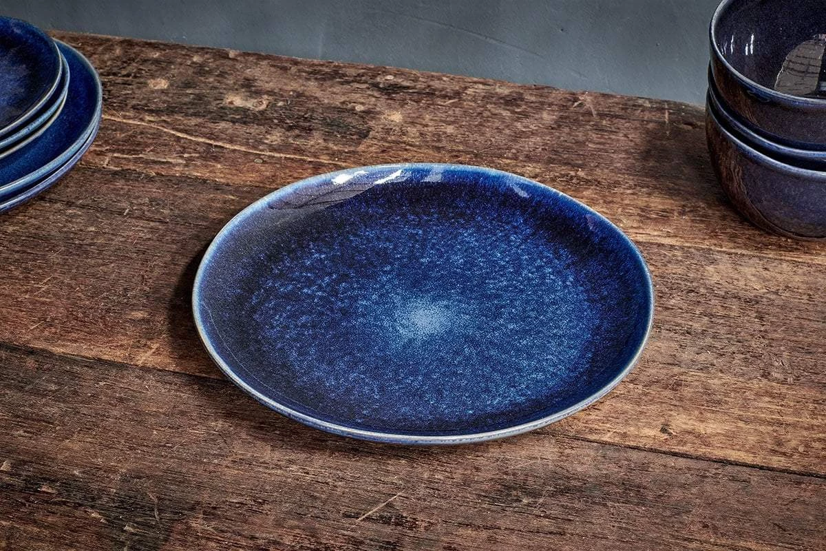 Striking and stylish our Dana ceramic collection has a deep indigo – sky blue glaze. The smooth, shimmering finish enhances the soft contours of this delightful dinner plate. The reactive glaze ensures each one is unique.