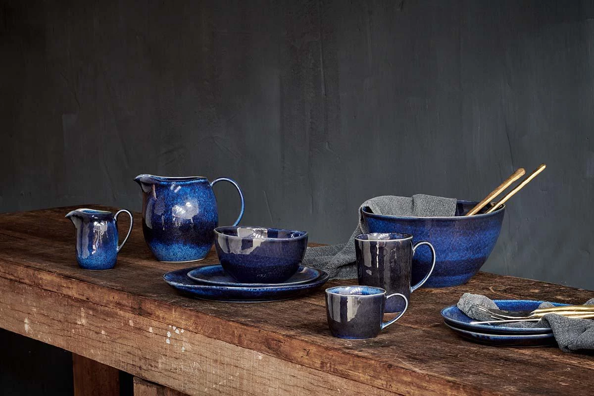 The tactile, smooth glaze of our Dana tall mug is a pleasure to hold. The indigo- sky blue glaze has an intense tone that is enhanced with organic contours of the mug. The reactive glaze ensures each one is unique.