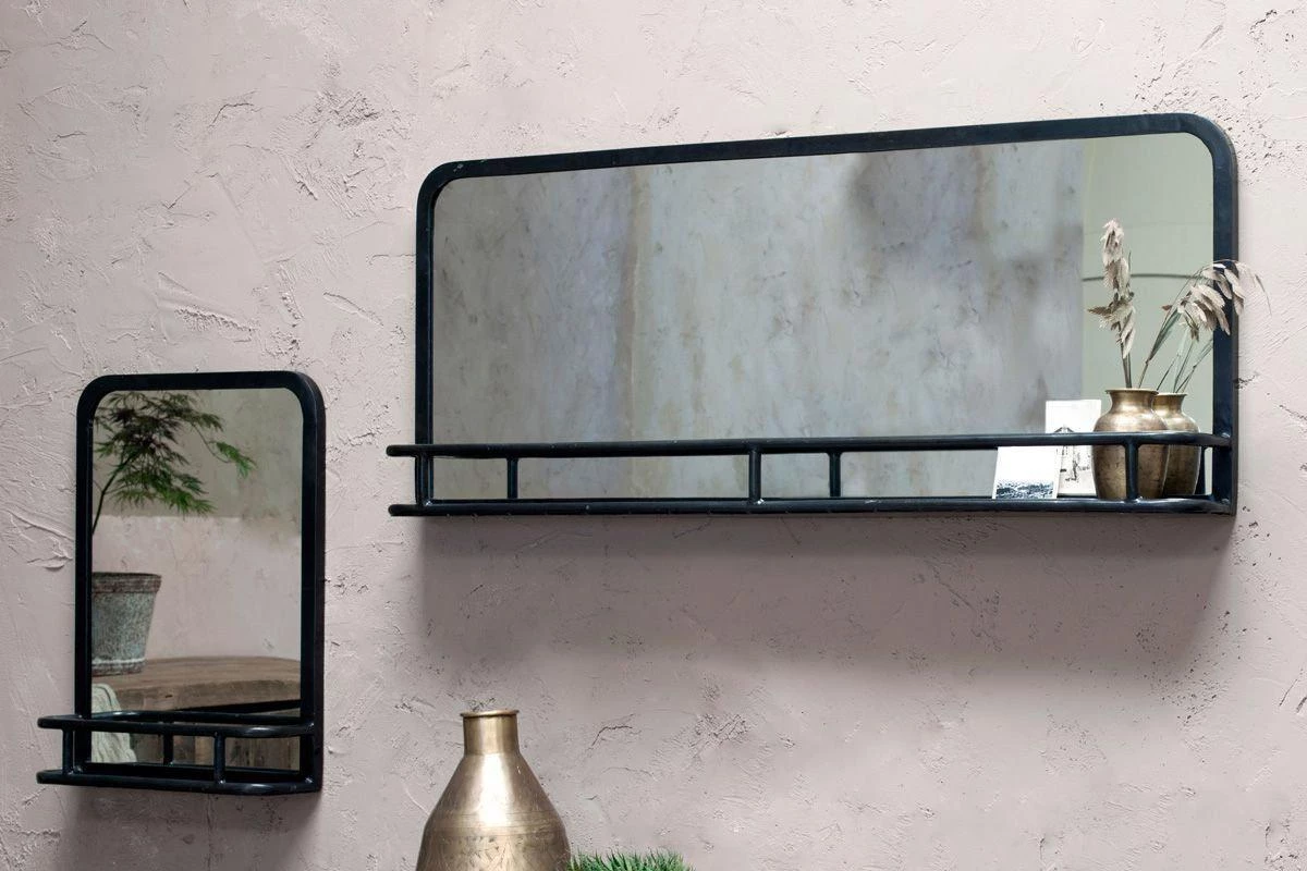 These bold black vintage styled frames have a forged black surround and well-designed shelf.