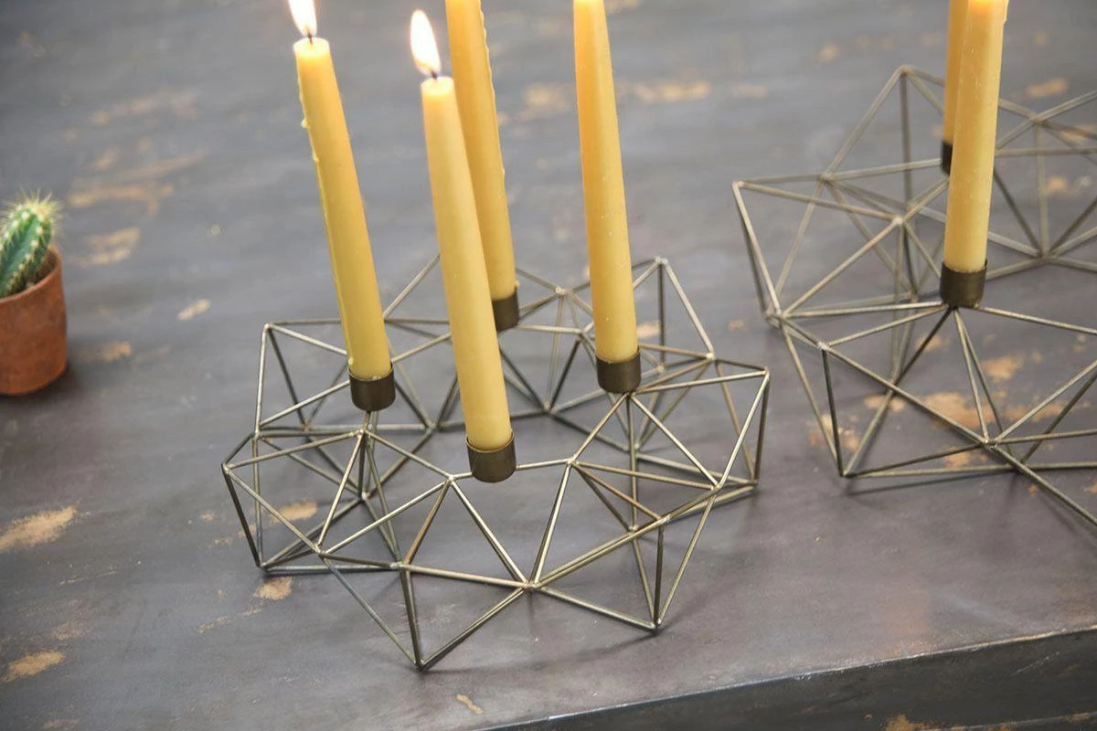 These geometric brass candle holders are a statement piece. They hold four standard candles and make an eye catching table centre.