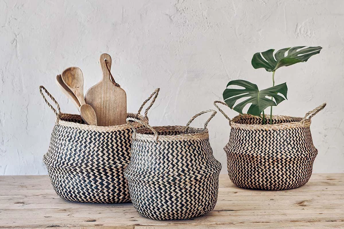 These tactile baskets fold neatly away for tidy compact storage. The seagrass is sourced sustainably.