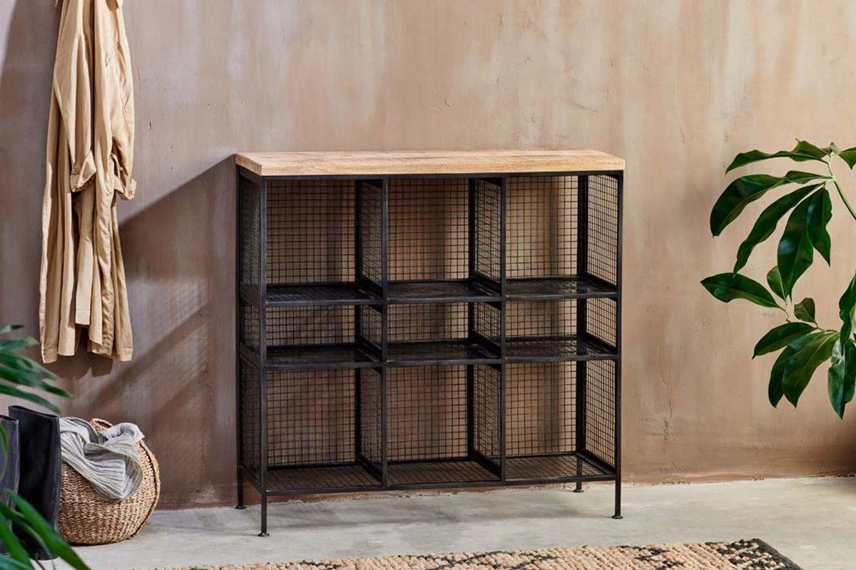 The ultimate in stylish storage, the Hasa Open Storage Shelf Unit combines industrial iron with tactile sustainable wood, to create a practical and versatile storage piece. The unit has six storage cubby holes.