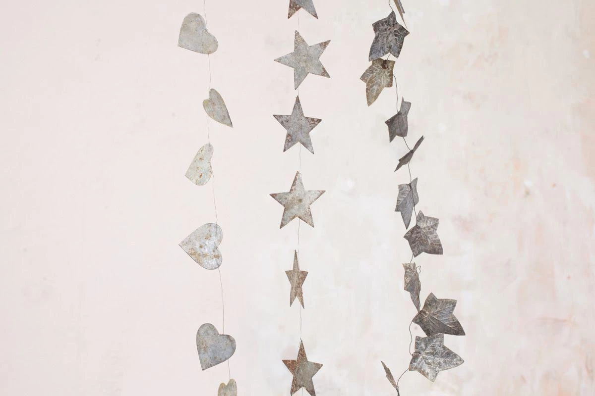 These wire heart garlands have a rustic zinc finish. The hearts are joined by a wire that can be twisted into shape.
