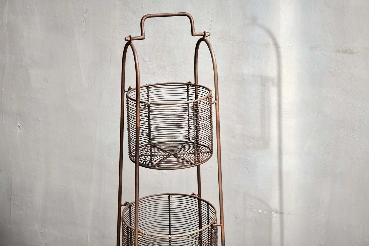 The warm tones of our aged brass Inkollu Three-Tiered Storage Stand is a stylish standalone piece, perfect for storing fruit & vegetables and other food items. Style in a kitchen or larder.
