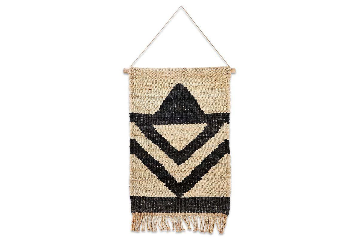 These handwoven wall hangings have a solid wood bar and hessian hanging tie.