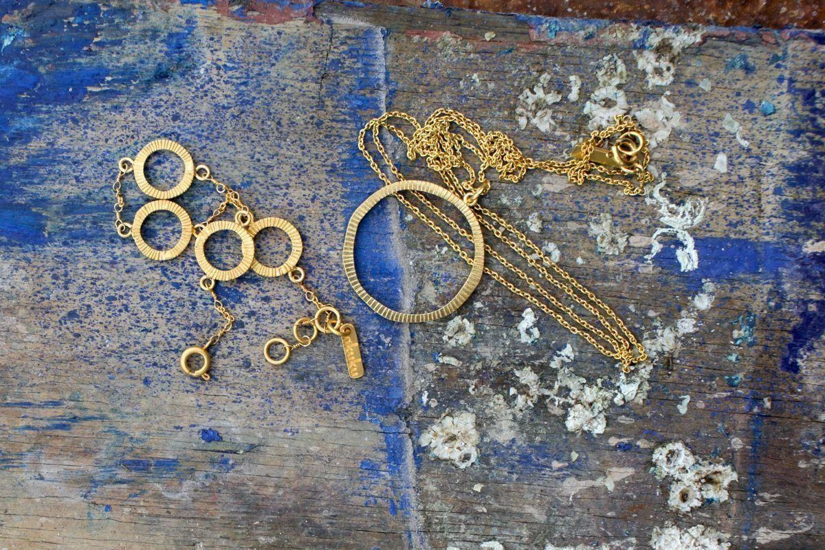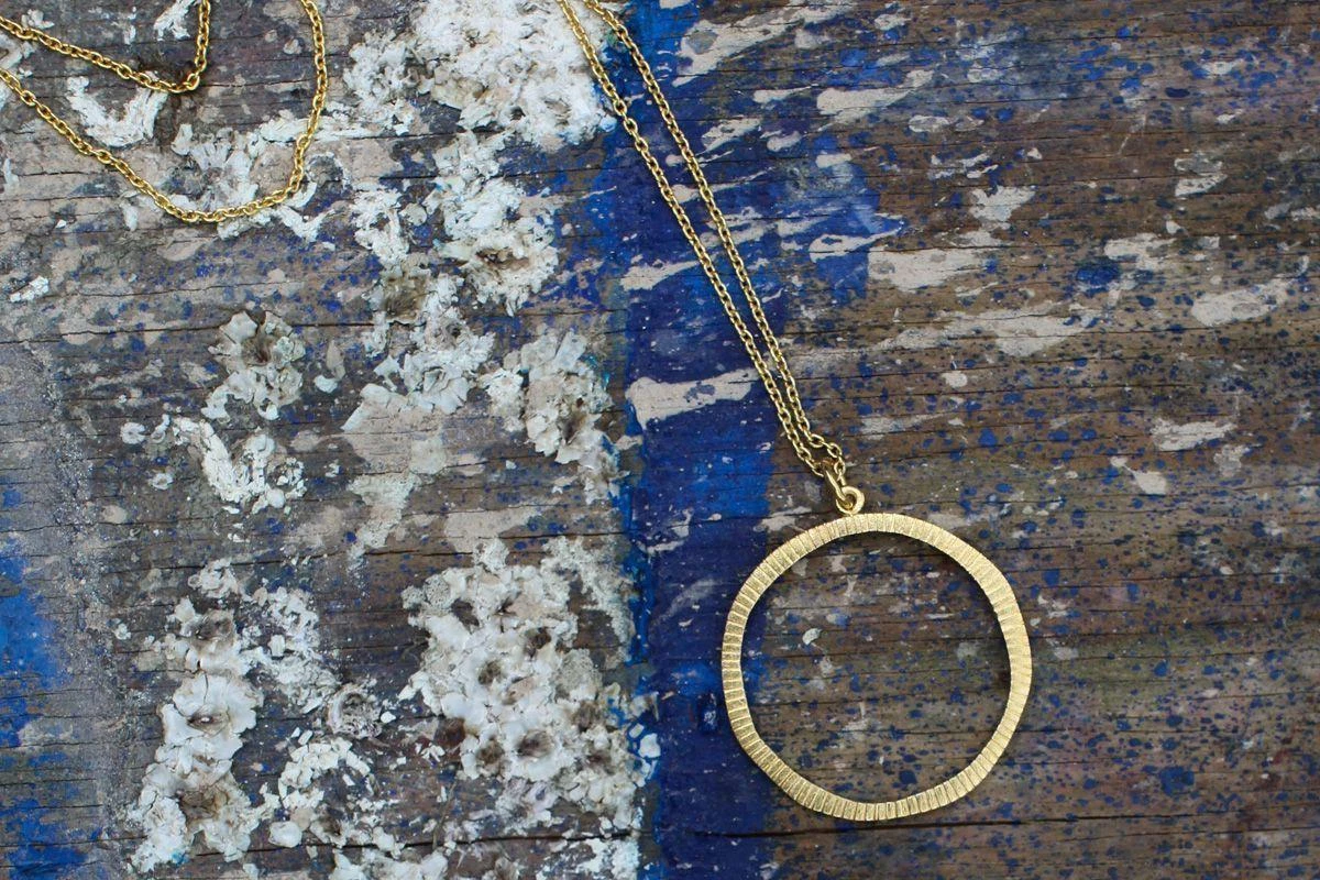 The lovely Lalia Necklace forms part of our hammered gold jewellery collection. Each necklace has a lovely long gold plated chain and comes complete with a hammered gold hoop. These lovely pieces are inspired by traditional African jewellery designs.