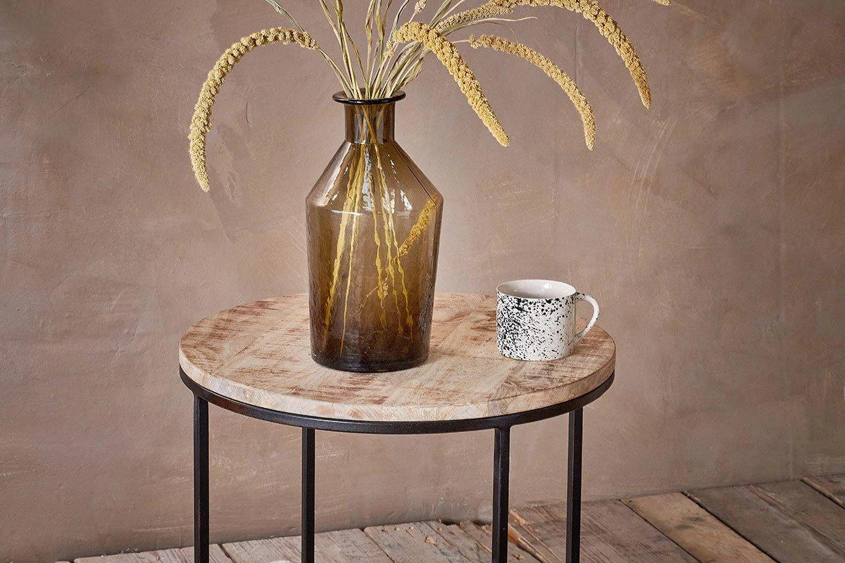 Our Luto side table in beautifully crafted from sustainable mango wood in a simple and stylish design. The natural wood top varies from piece to piece, providing each table with its’ own unique character. The solid iron framework feels sturdy and adds an attractive design detail to the piece. Style in a living room or bedroom and add a warm and natural tone.