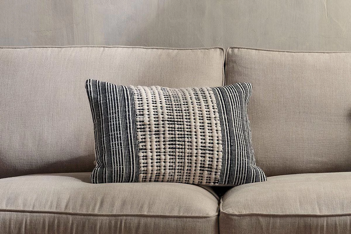 Textured and tactile, our Mika Oblong Cushion Covers blend recycled materials in an appealing pattern and soft tangible finish. Play with shapes and sizes, for an easy way to revive your home interior.