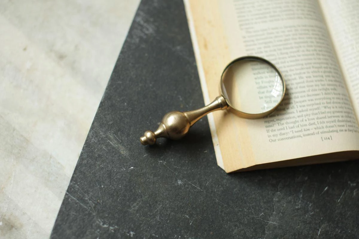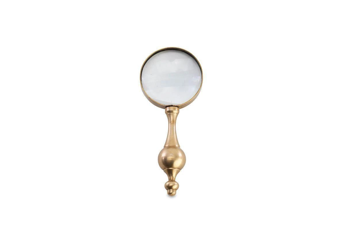 This traditional, silver-plated magnifying glass is handmade from glass.