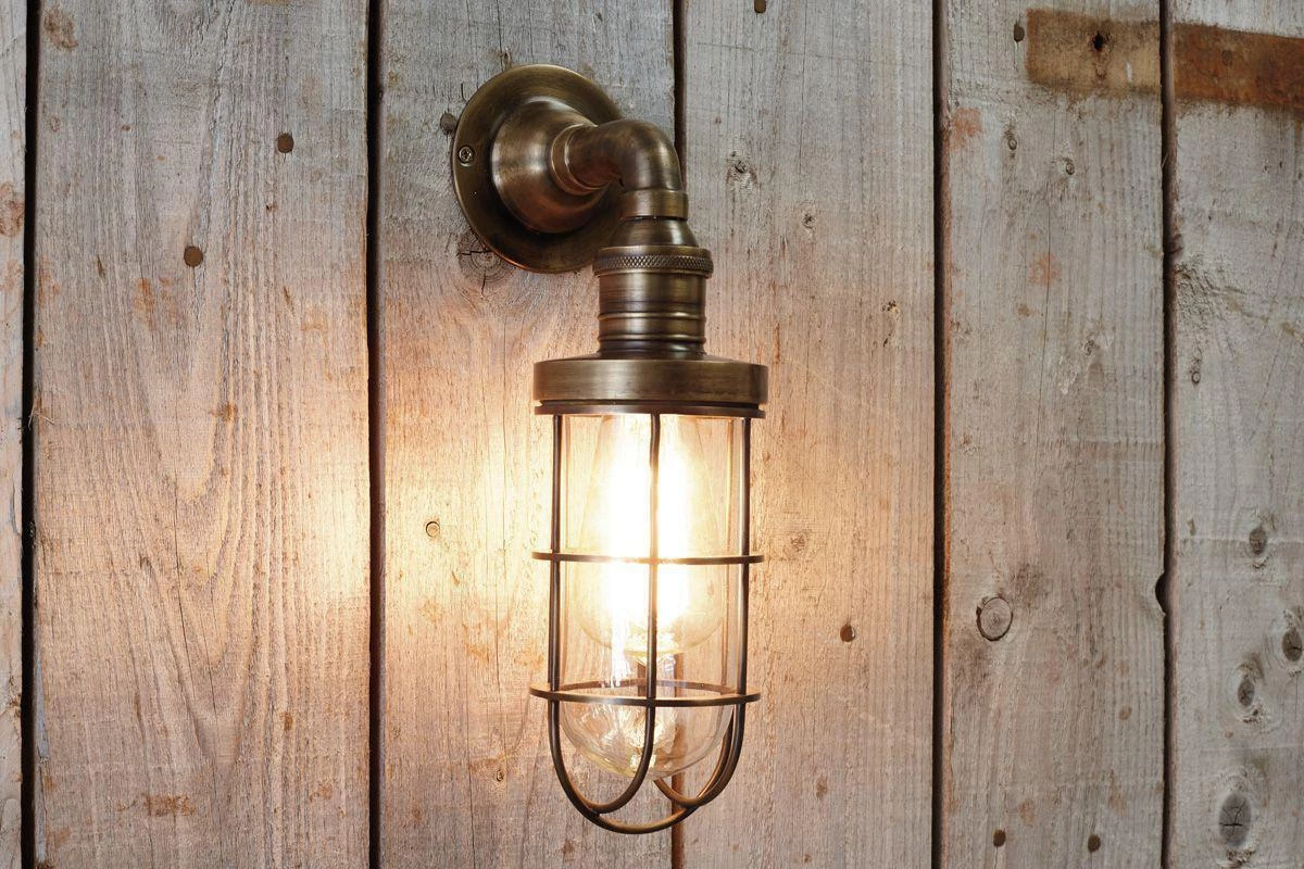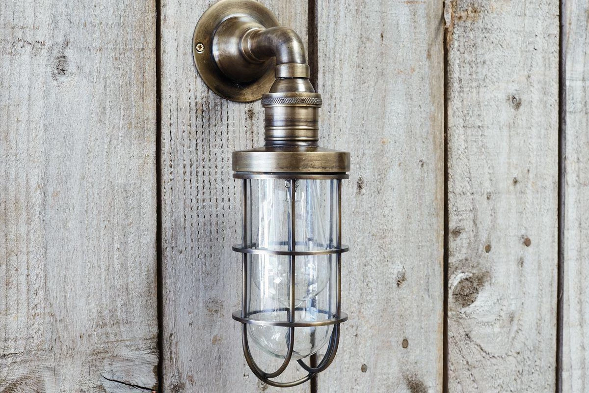 This brass outdoor light has a striking caged design, perfect for adding definition and light to an outside space.