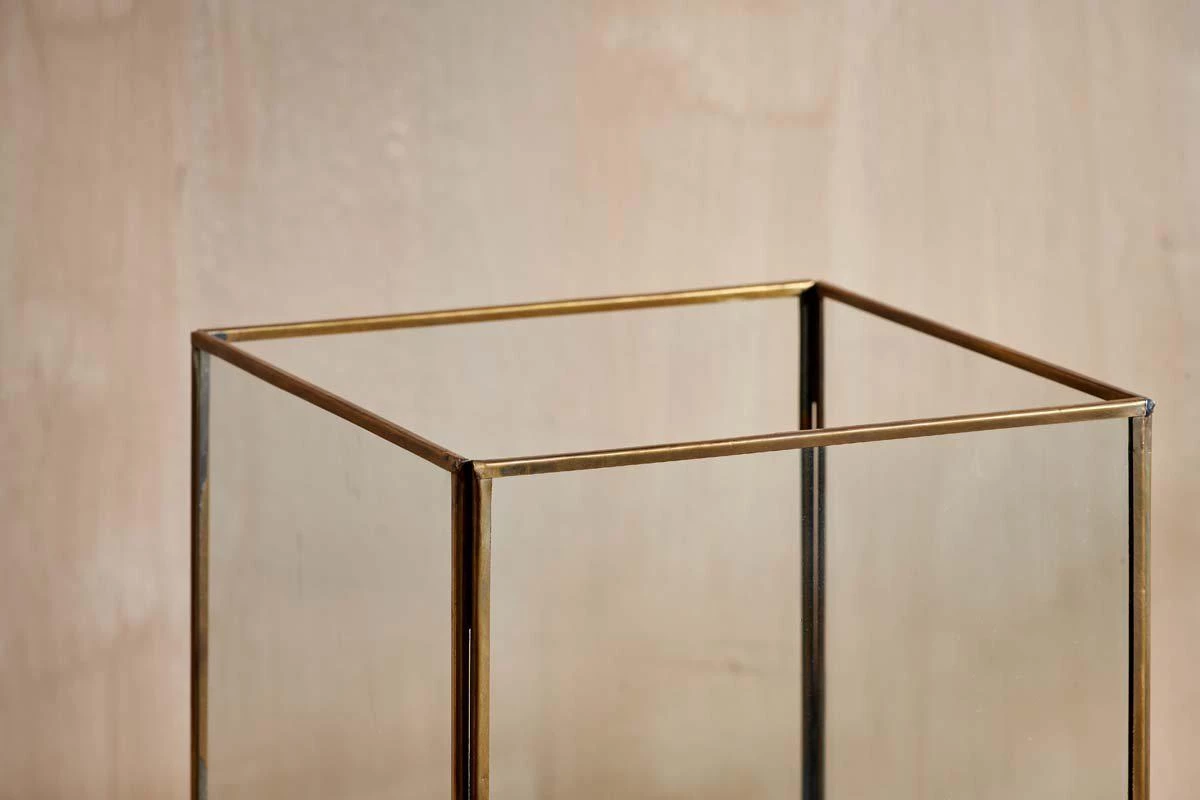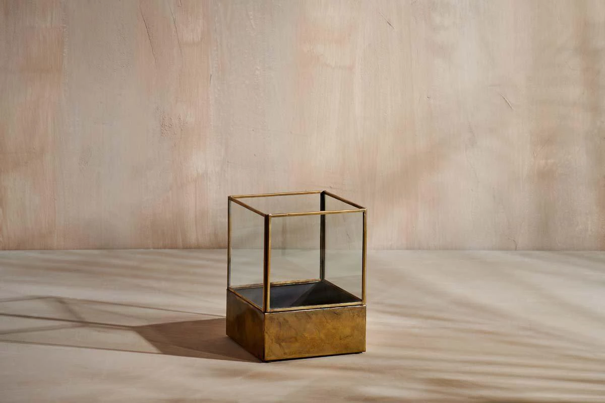 Set an ambient mood with soft candlelight from our Sampara Storm Lantern. The antique patina gives a feeling of age – old elegance, complemented with a simple box design. This lantern is perfect for a low church pillar candle or t-light.