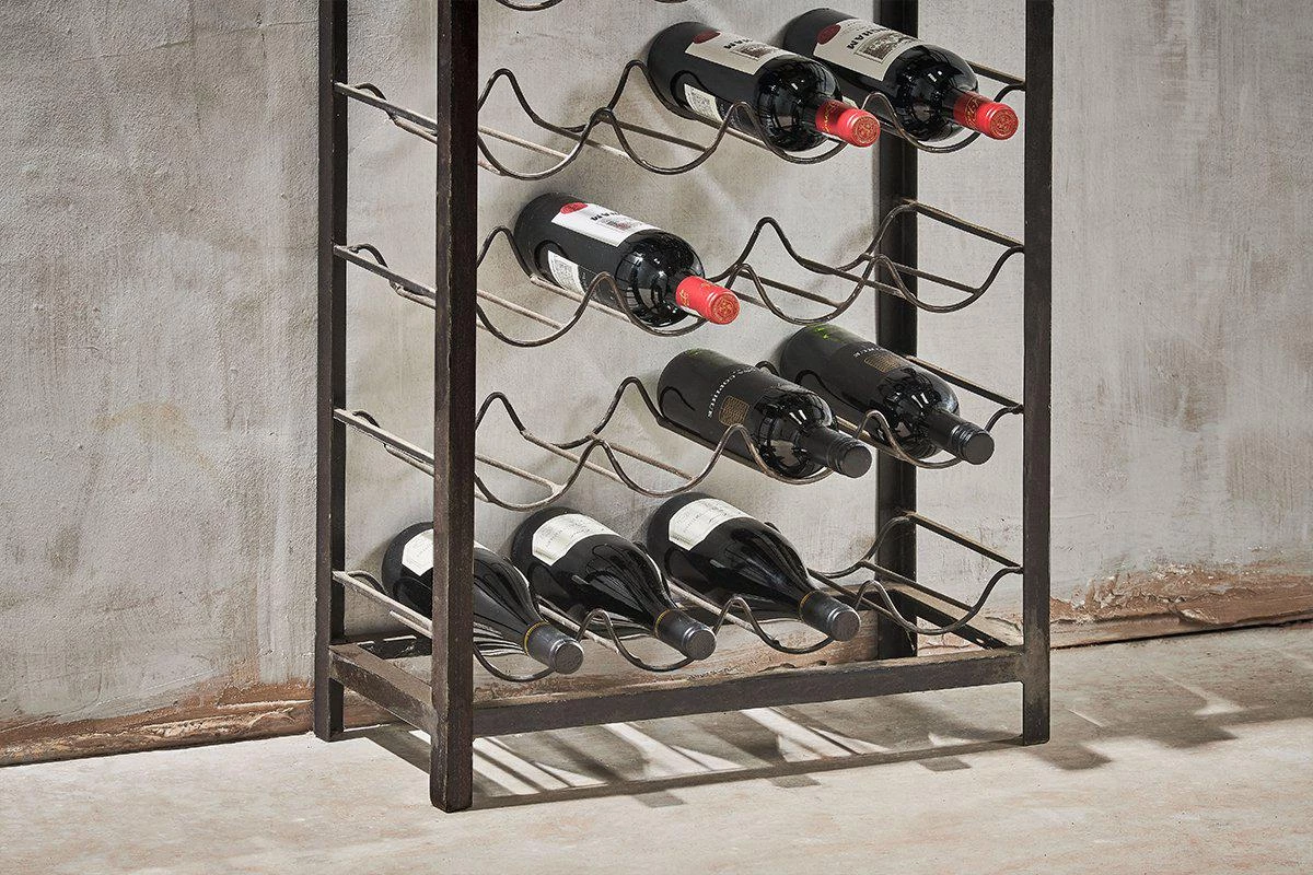These practical iron wine racks have a mango wood top and iron base. Choose from two sizes, 12 bottles and 28 bottles.