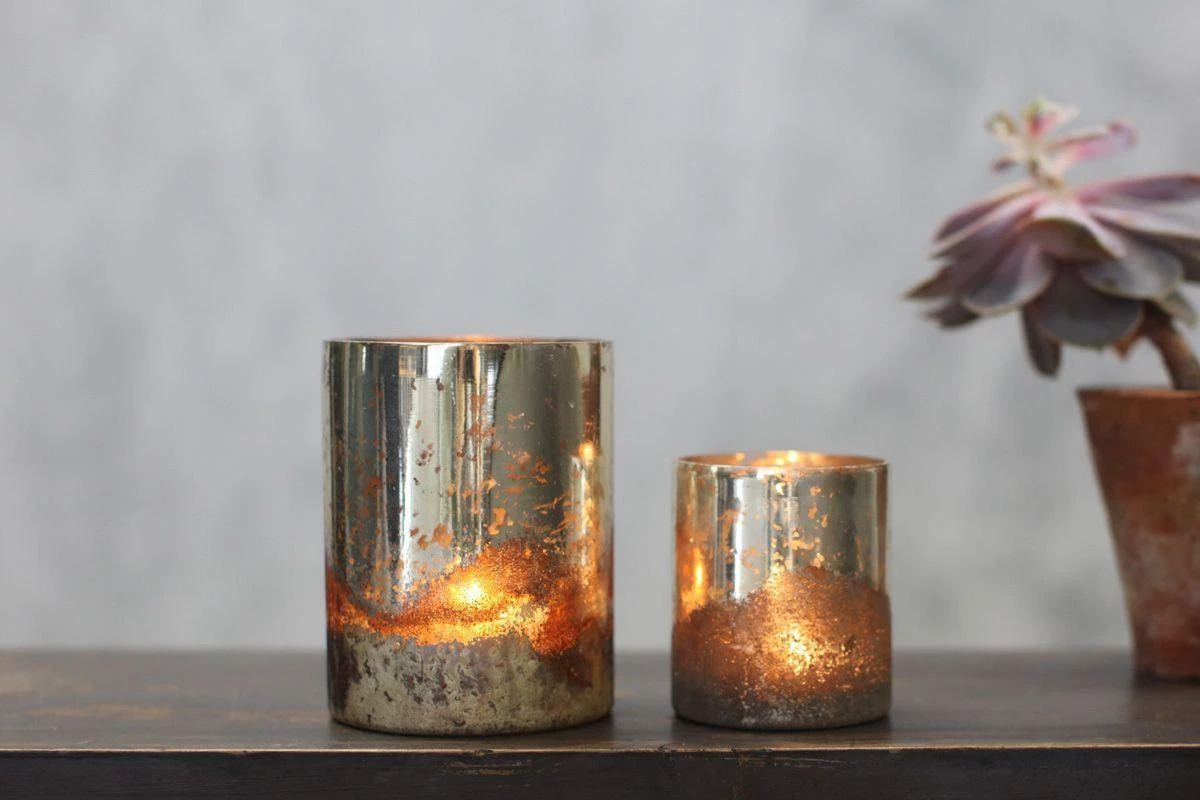These rustic silver t lights have an elegant cylinder shape that sits beautifully on a window sill, mantel piece or coffee table.