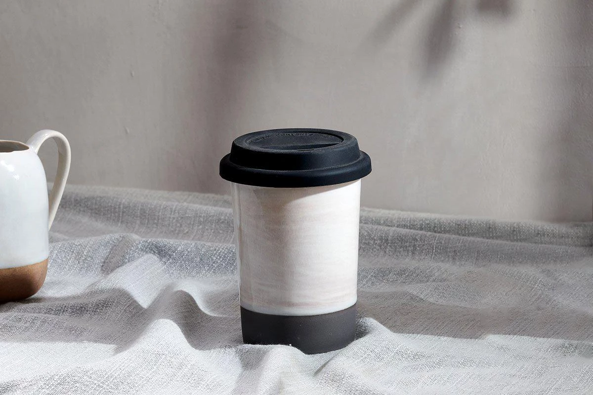 The slate Edo travel Mug has been designed to suit a more sustainable lifestyle. The silicone top means you can enjoy a hot drink wherever your day takes you. Our Edo collection is created from a slate tone and finished with an off- white glaze. Undertones of the slate colour show through in parts, adding to the charm of the piece.