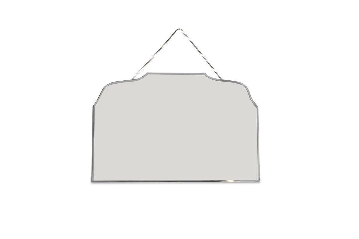 This rectangular shaped mirror is classic vintage. The landscape aperture is practical and stylish. We love the curved detailing on the top corners of the mirror.
