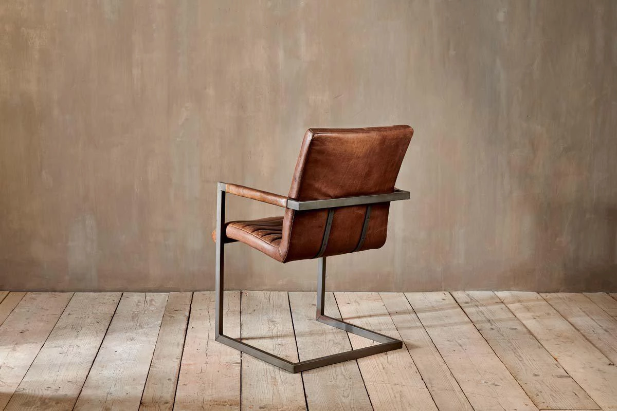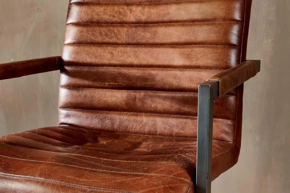 Our Wamma Leather Desk Chair combines comfort and style in equal measure. Sumptuously upholstered in dark chocolate brown leather enhanced with a ribbed design and compliments the brushed metal finish to the framework of the chair.