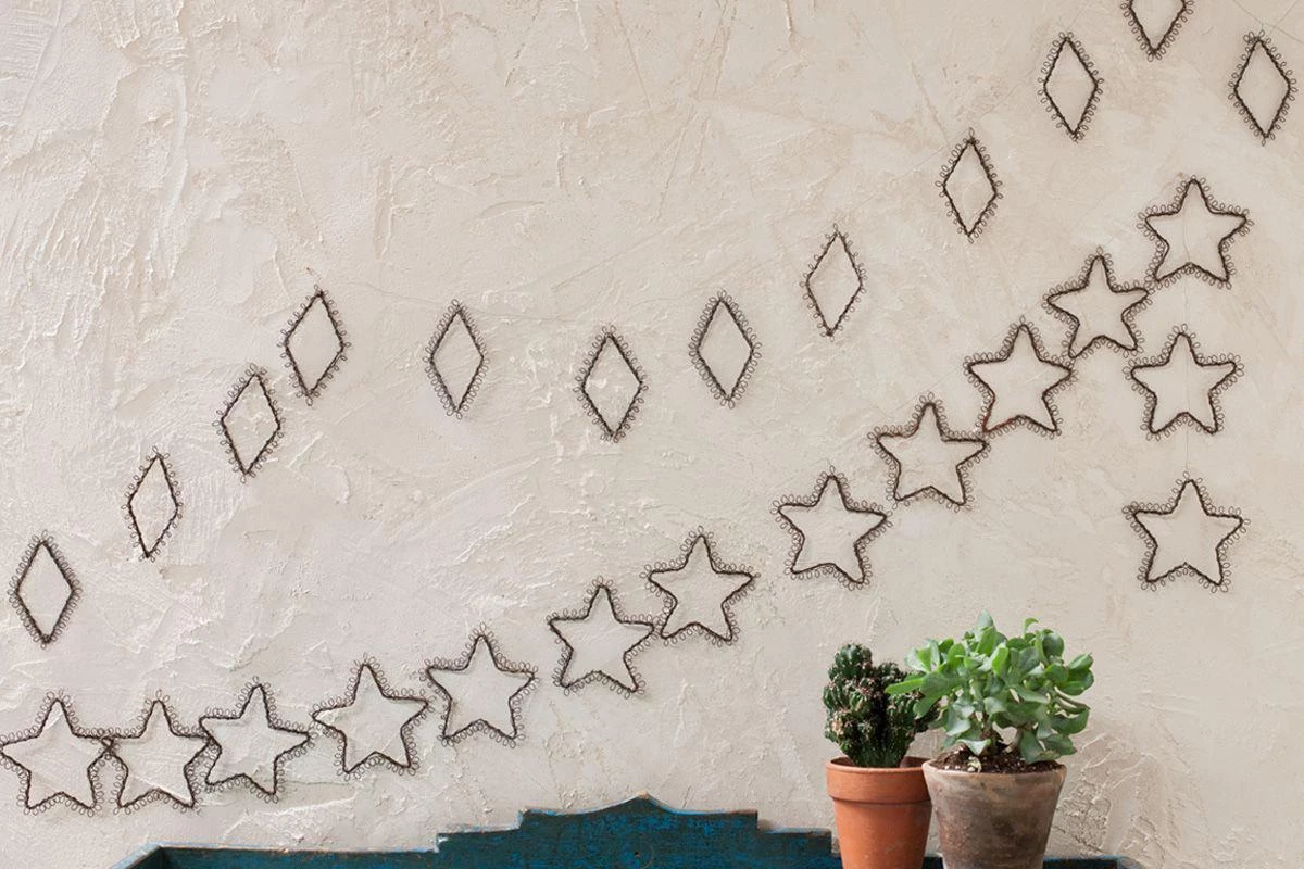 The wire garlands are dressed with either a simple star shape or diamond shape decoration in a stylish rust finish.
